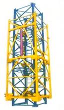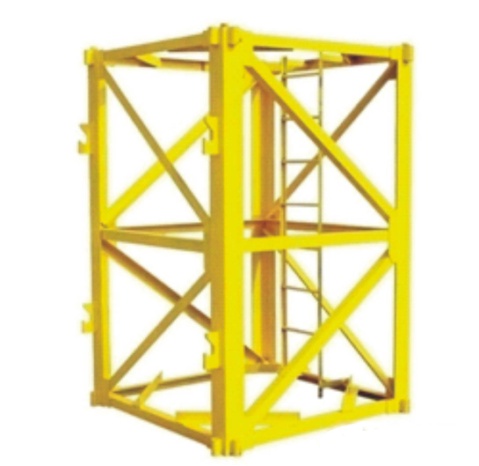 2)塔身與標(biāo)準(zhǔn)節(jié)。塔身安裝在底架上,由許多標(biāo)準(zhǔn)節(jié)用螺栓連接而成。標(biāo)準(zhǔn)節(jié)有加強(qiáng)型和普通型兩種,加強(qiáng)型標(biāo)準(zhǔn)節(jié)全部安裝在塔身最下部(即在全部普通型標(biāo)準(zhǔn)節(jié)下面),嚴(yán)禁把加強(qiáng)型標(biāo)準(zhǔn)節(jié)和普通型標(biāo)準(zhǔn)節(jié)混裝。各標(biāo)準(zhǔn)節(jié)內(nèi)均設(shè)有供人通行的爬梯,并在部分標(biāo)準(zhǔn)節(jié)內(nèi)(一般每隔三節(jié)標(biāo)準(zhǔn)節(jié))設(shè)有一個(gè)休息平臺(tái)。