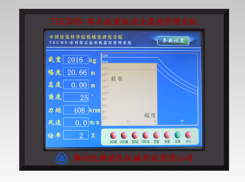 (1)實(shí)時(shí)顯示:以圖形和數(shù)值實(shí)時(shí)顯示當(dāng)前工作參數(shù),包括起重量、力矩、幅度、回轉(zhuǎn)角度及起升高度;(圖形為塔機(jī)額定起重特性曲線)