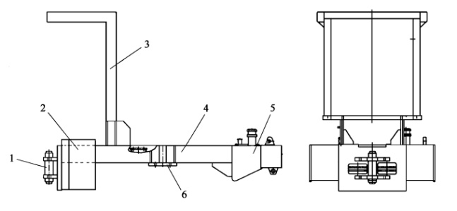 1-中心銷軸;2-液壓油箱;3-傾翻保護(hù)架;4-框架大梁;5-燃油箱;6-后橋支板