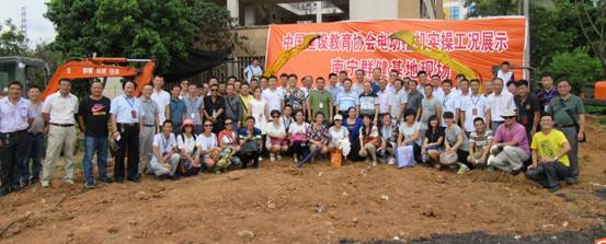 中國建設教育協會、建機專委會和全體教師觀摩了電動教學型挖掘機全真工況作業展示